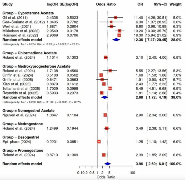 Notre revue systématique avec méta-analyse sur le risque de méningiomes intracrâniens associé aux médicaments progestatifs, menée en partenariat avec le GHU PARIS, service de neurochirurgie du Pr Johan Pallud.